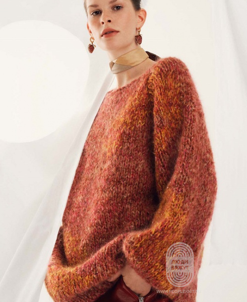 Примерный расход: на женский пуловер размера М потребуется около 250-300 г.