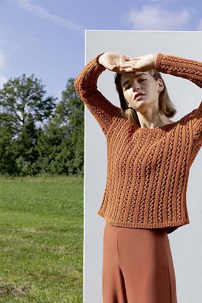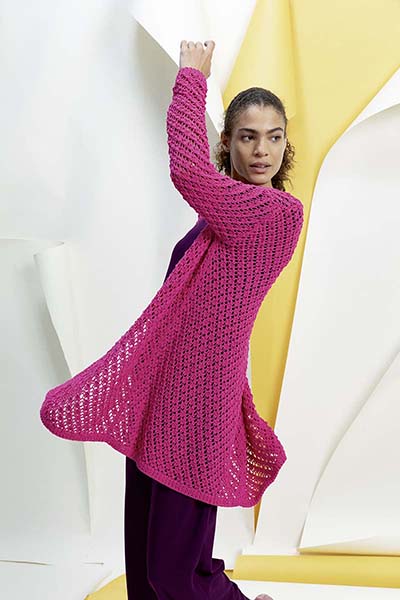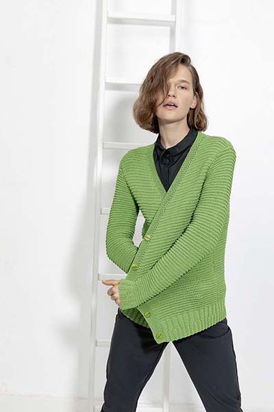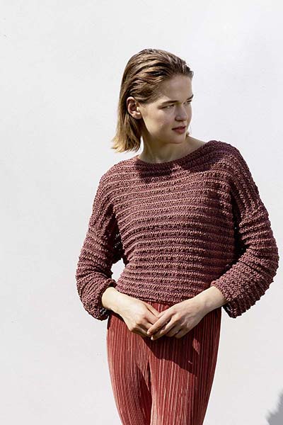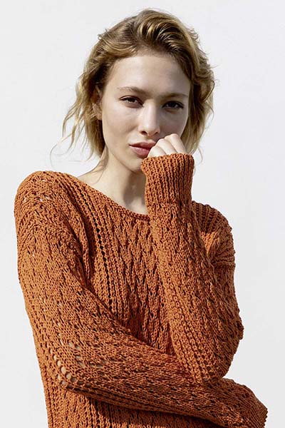 Этот тонко закрученный органический хлопок. Он легкий, но объемный, и его лучше всего вязать свободно, чтобы создать идеальный летний образ. Спицы 4½ - 5