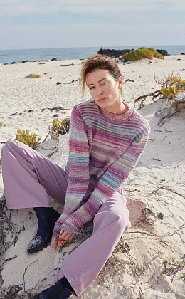 Мягчайшая нить из сверхтонкого мериноса 19.5 микрон покоряет с первых прикосновений. LOVIS теперь не только с эффектом деграде, но и с акварельными полосками.